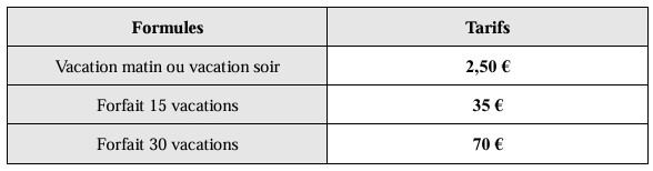 Les tarifs de la garderie sont :