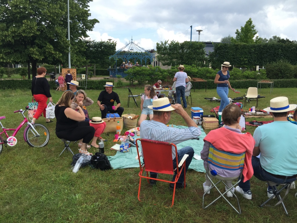Déjeuner déguisé sur l’herbe comme à la belle époque avec votre canotier, vos ombrelles, votre nappe à carreau,  n’oubliez pas votre pique nique bien sur …